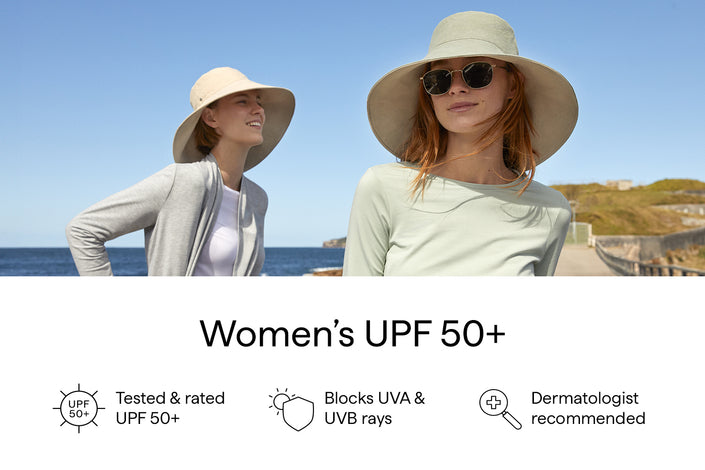 Solbari’s range of women’s sun protection clothing includes SPF shirts, long-sleeved polos, t-shirts, dresses, swimwear, and lightweight layers designed to shield your skin without sacrificing style. All fabrics are rated UPF 50+, blocking at least 98% of UVA and UVB rays, the highest level of sun protection available globally. Whether you’re going for a walk, heading to brunch, the beach, or travelling abroad, our breathable, soft, and comfortable fabrics, along with flattering, feminine fits, make sun protection effortless and elegant.