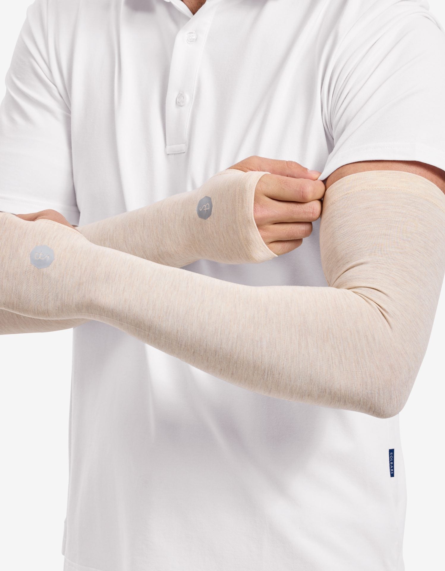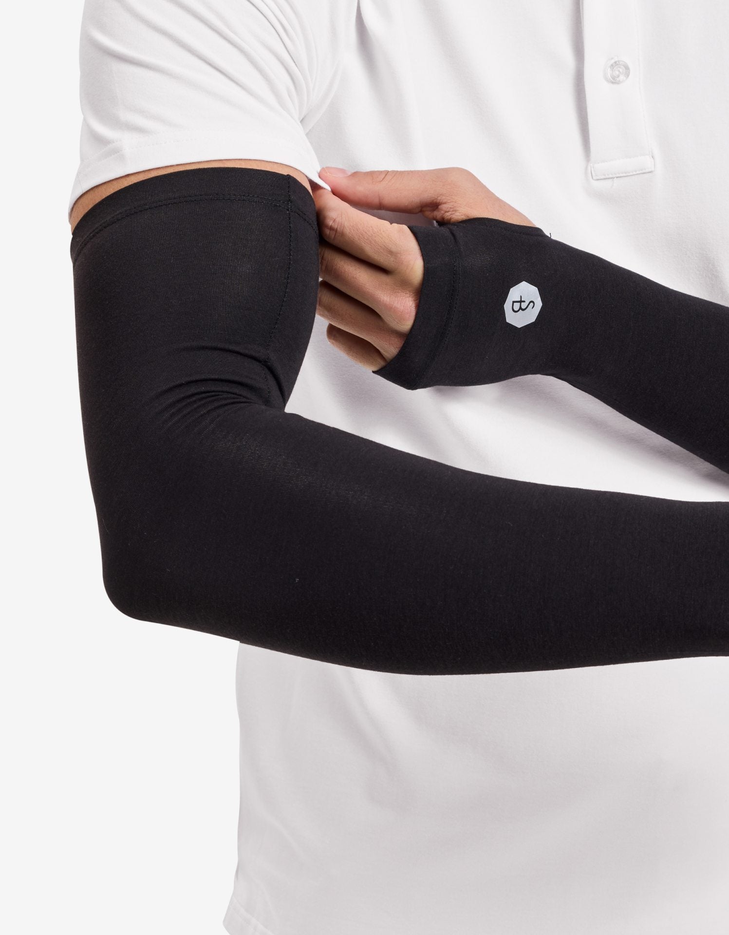 These arm sleeves are ideal when wearing a short-sleeve t-shirt or polo, protecting your arms and hands from UV rays. Designed for individuals with sensitive skin, and sold as a pair, they come in two styles: with or without thumbholes. A thumbhole is a sleeve opening for the thumbs.