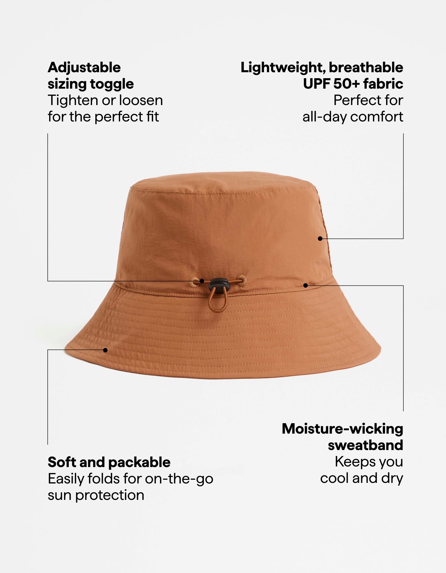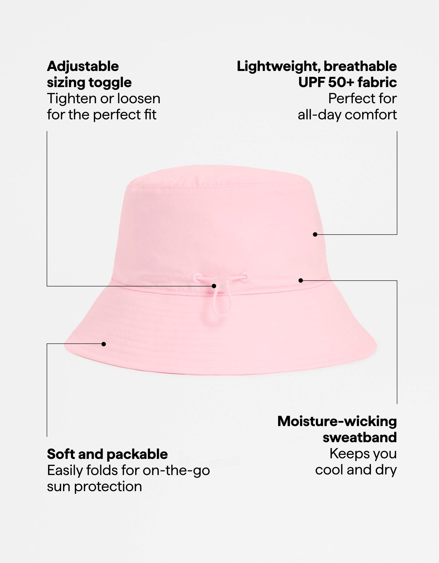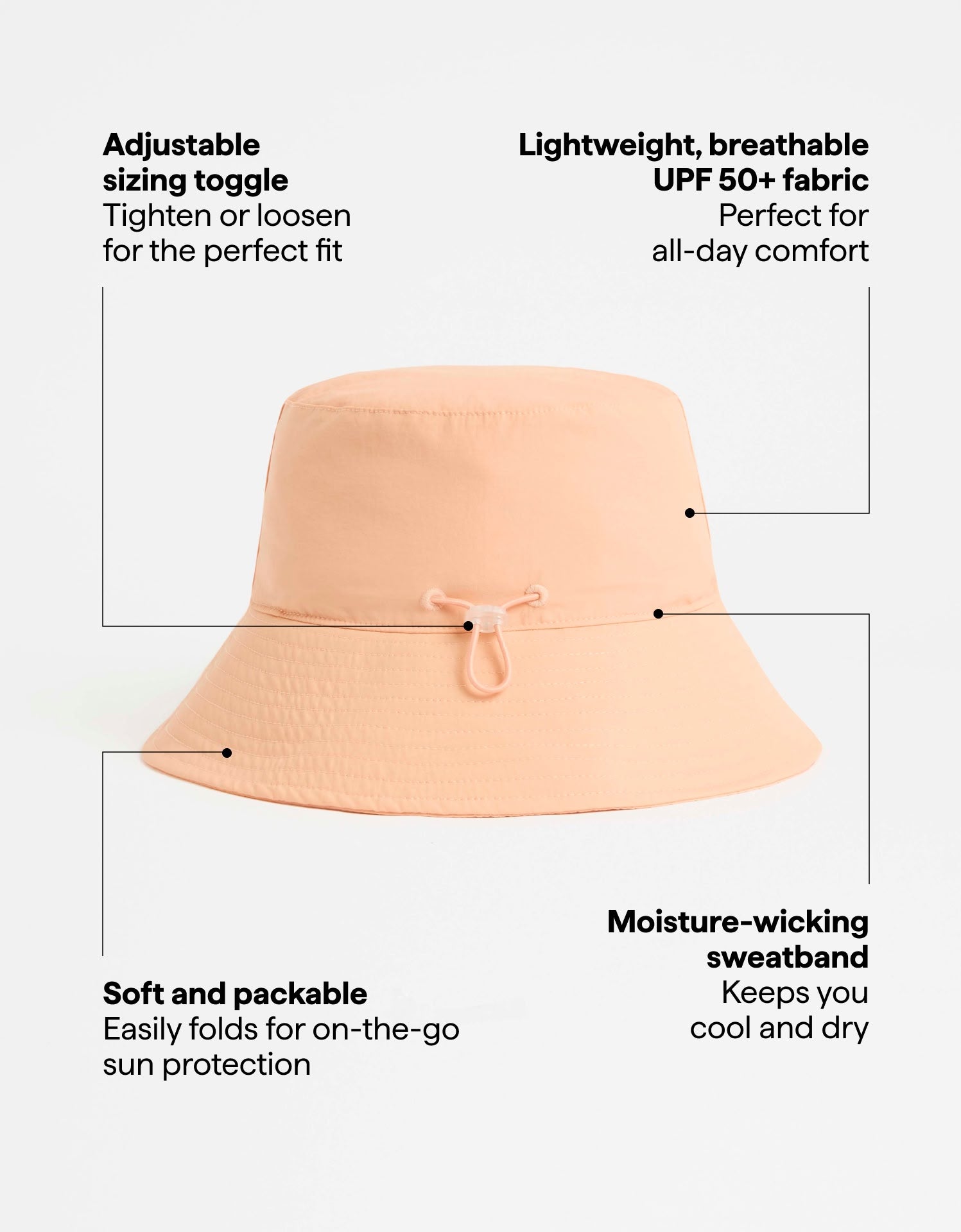 Crafted from soft, lightweight fabric, this bucket hat is exceptionally comfortable, and durable. It folds down easily for convenient storage in your bag.