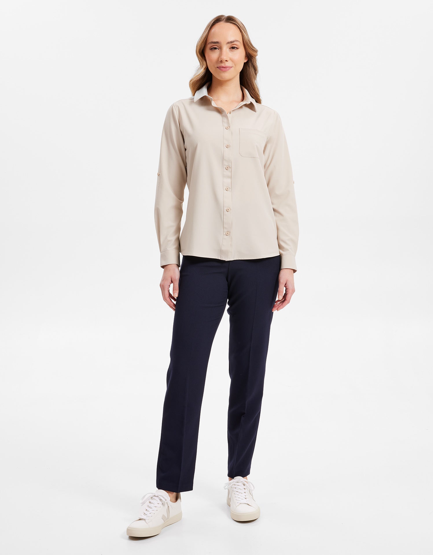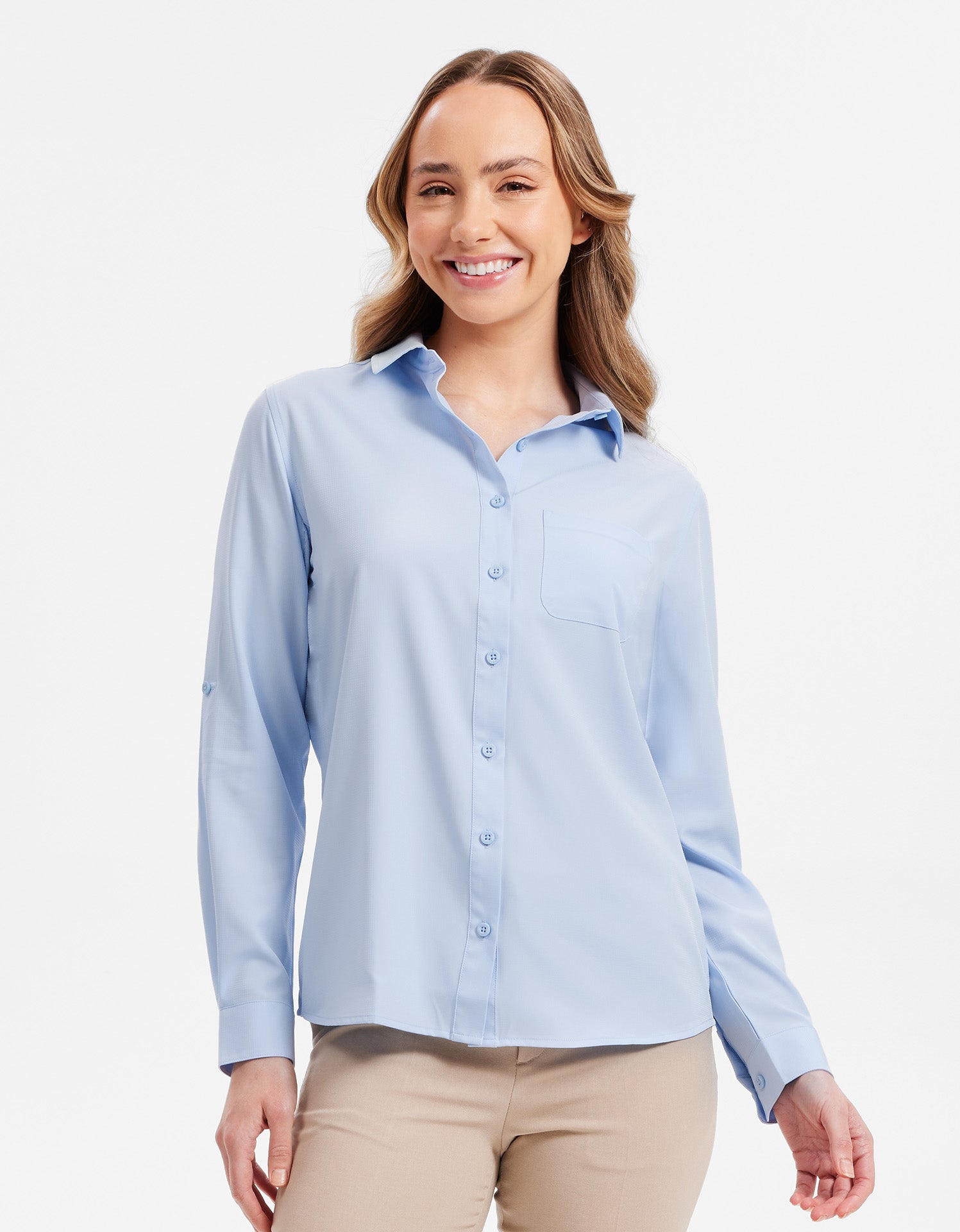 Our UPF 50+ Everyday Performance Sun Shirt for women is perfect for outdoor activities and everyday wear, including walking, hiking, fishing, and gardening. Made from eco-conscious fabric, it’s lightweight, quick-drying, moisture-wicking, and four-way stretch with roll-up sleeves.