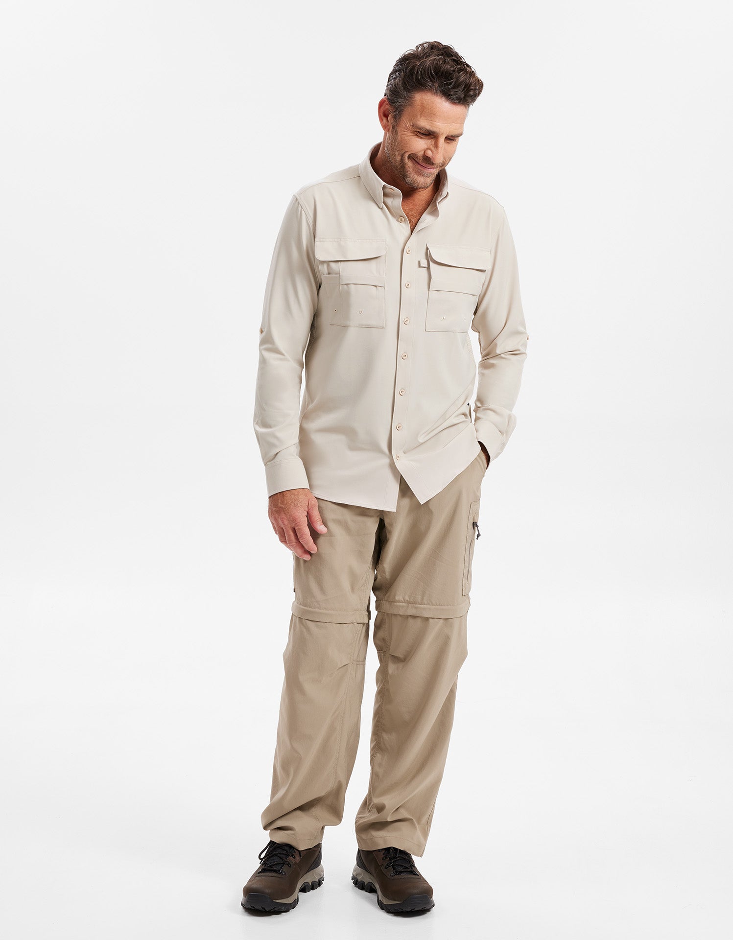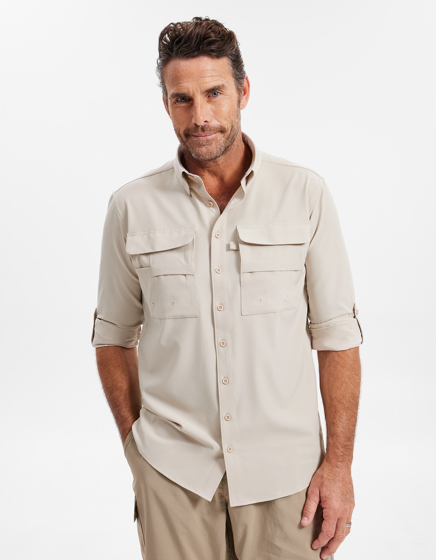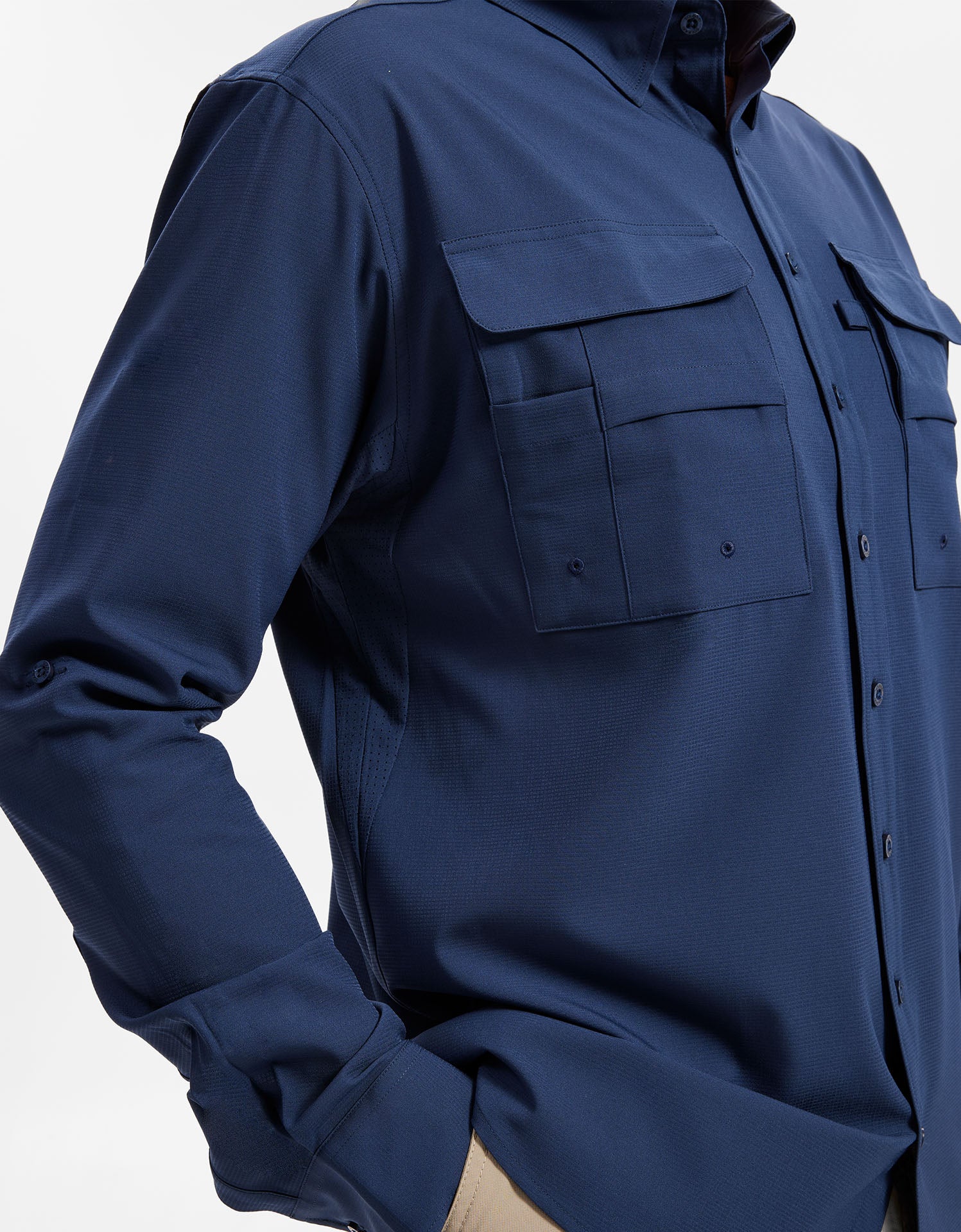 Our UPF 50+ Dry Lite Fabric is eco-conscious, made from recycled, breathable, lightweight, and quick-drying material. Its 4-way stretch and soft feel ensure all-day comfort for outdoor activities.
