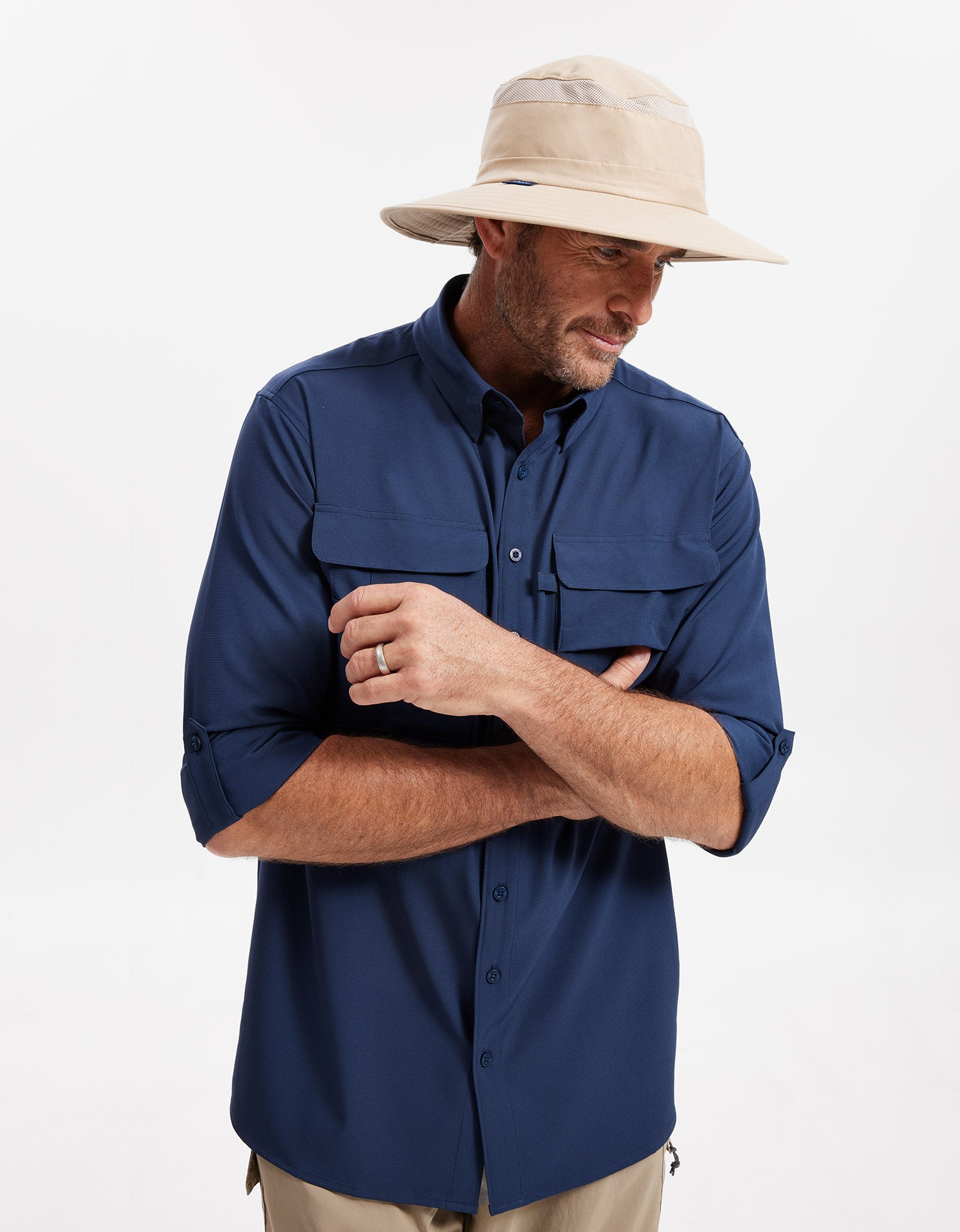 Men wearing Solbari sun hat and Hiking Shirt UPF 50+