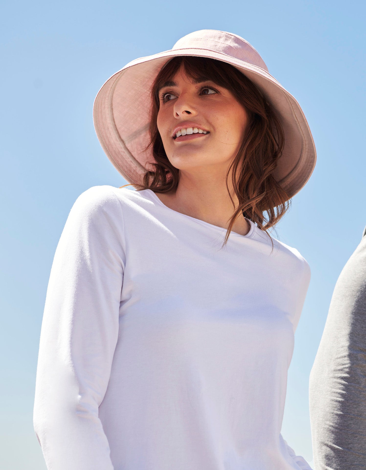 Our Holiday Sun Hat offers generous coverage with effortless style. Featuring an internal wire, the 4" (10.5 cm) brim is fully flexible and shapeable for a personalised look.