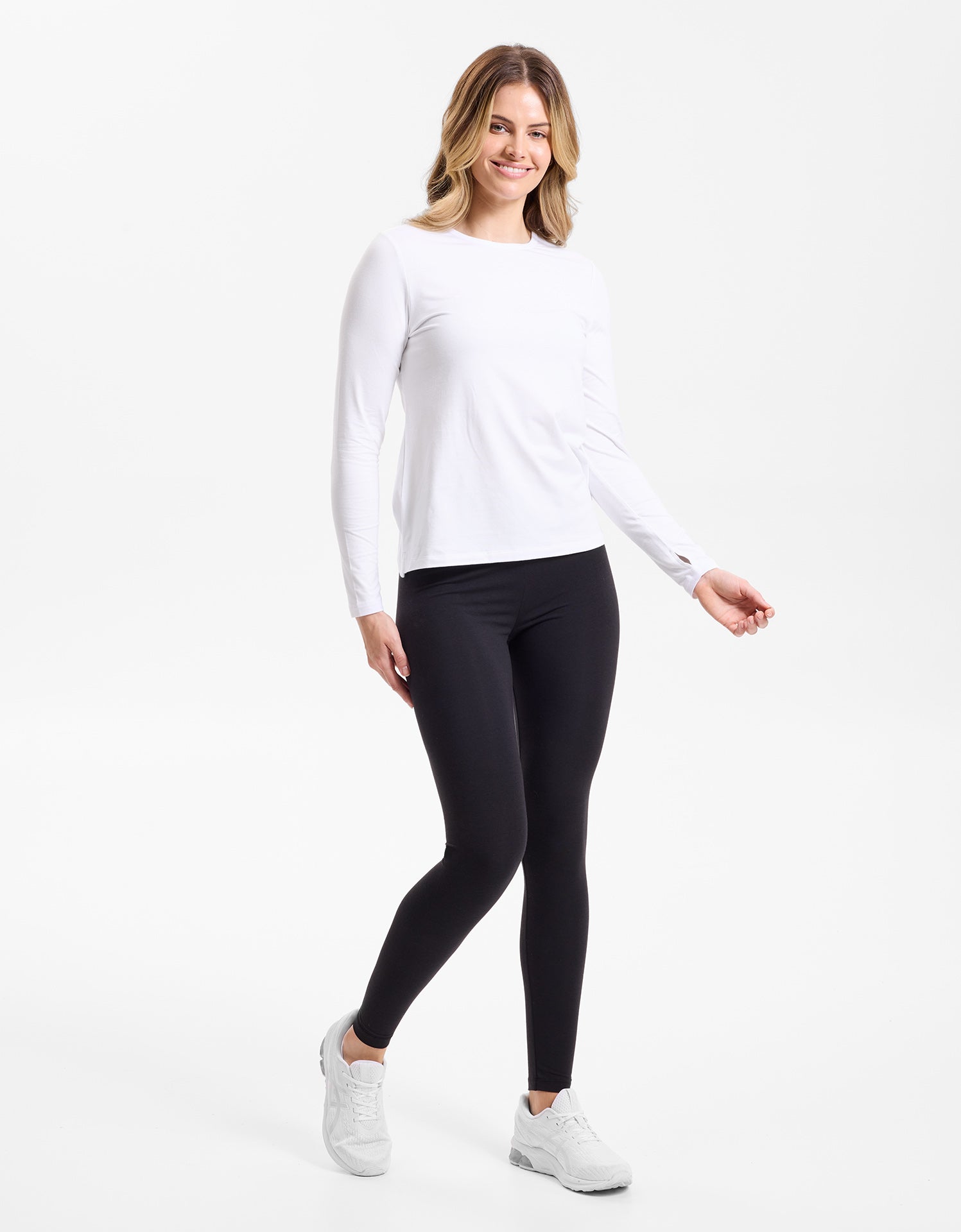 Soft and comfortable for walking and everyday wear, these leggings are perfect worn on their own or under a dress or tunic. Made from natural fibres, they feel gentle against the skin while offering smoothing support, a mid-rise fit, 4-way stretch, and all-day sun protection. Designed for both comfort and style, they bring an effortless classic look to your wardrobe.