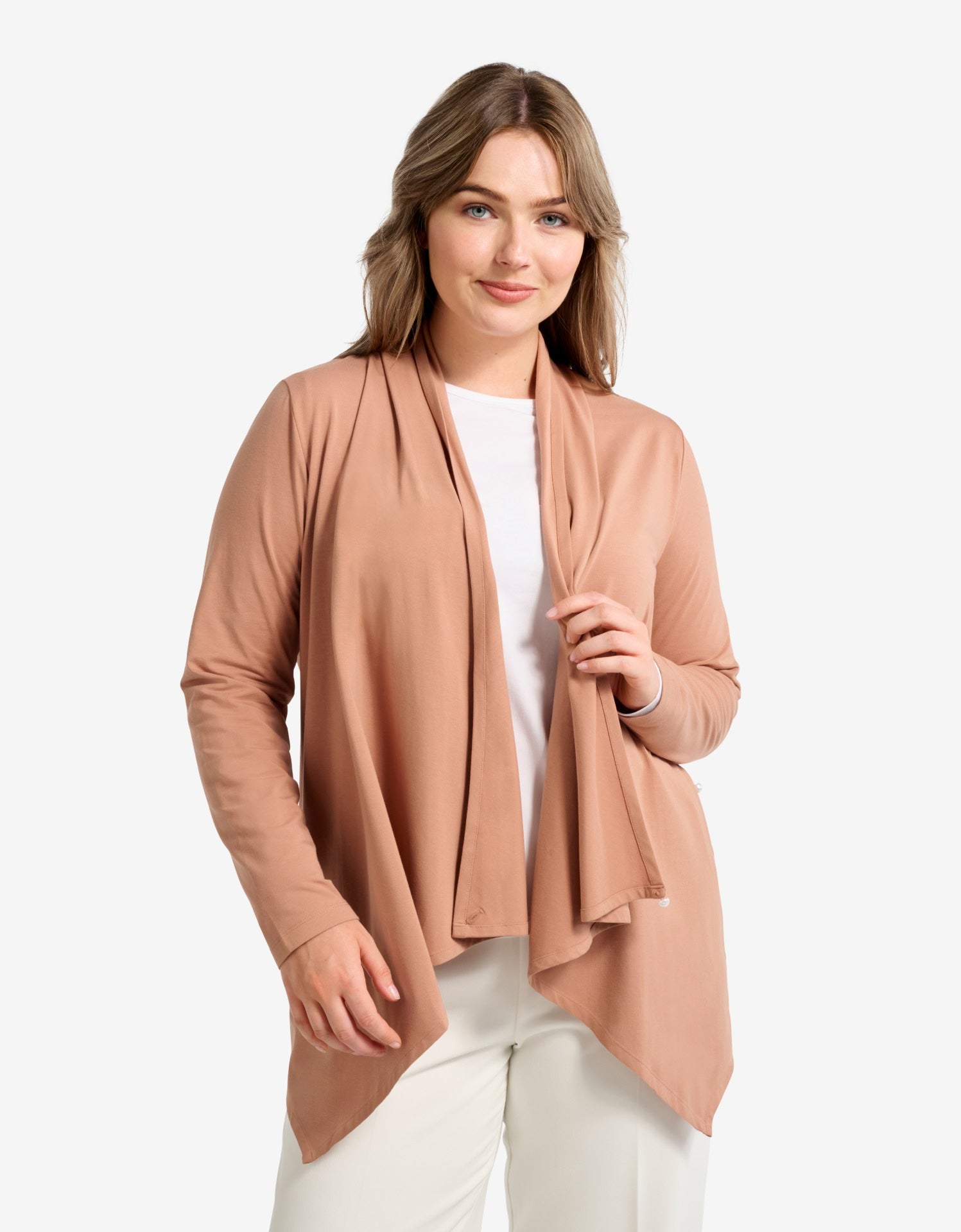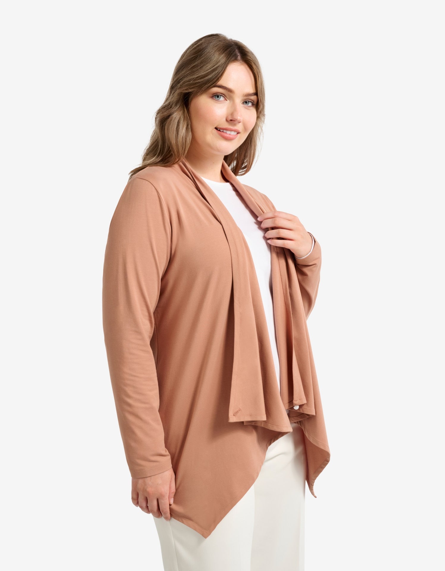 Stay stylish and protected with our UPF 50+ Luxe Sun Wrap. Designed for women with sensitive skin, it’s crafted from breathable cotton-bamboo and features elegant buttons, a ruched collar, and thumbholes for added coverage, so you can enjoy your day in the sun with confidence.