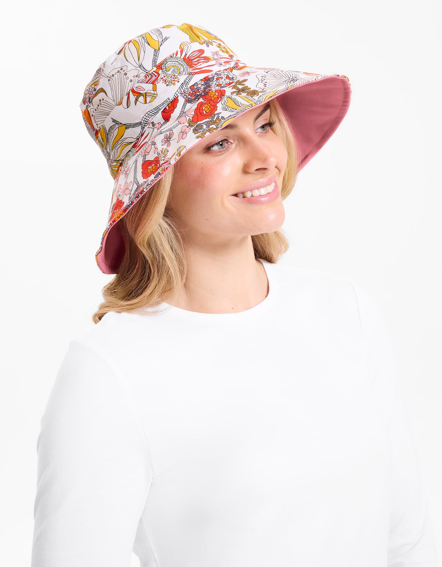 Our Reversible Wide Brim Sun Hat with a 3.75" (9.5 cm) brim length offers UPF 50+ sun protection, lightweight packability, an adjustable fit, and a ponytail opening, perfect for walking, gardening and beach days.
