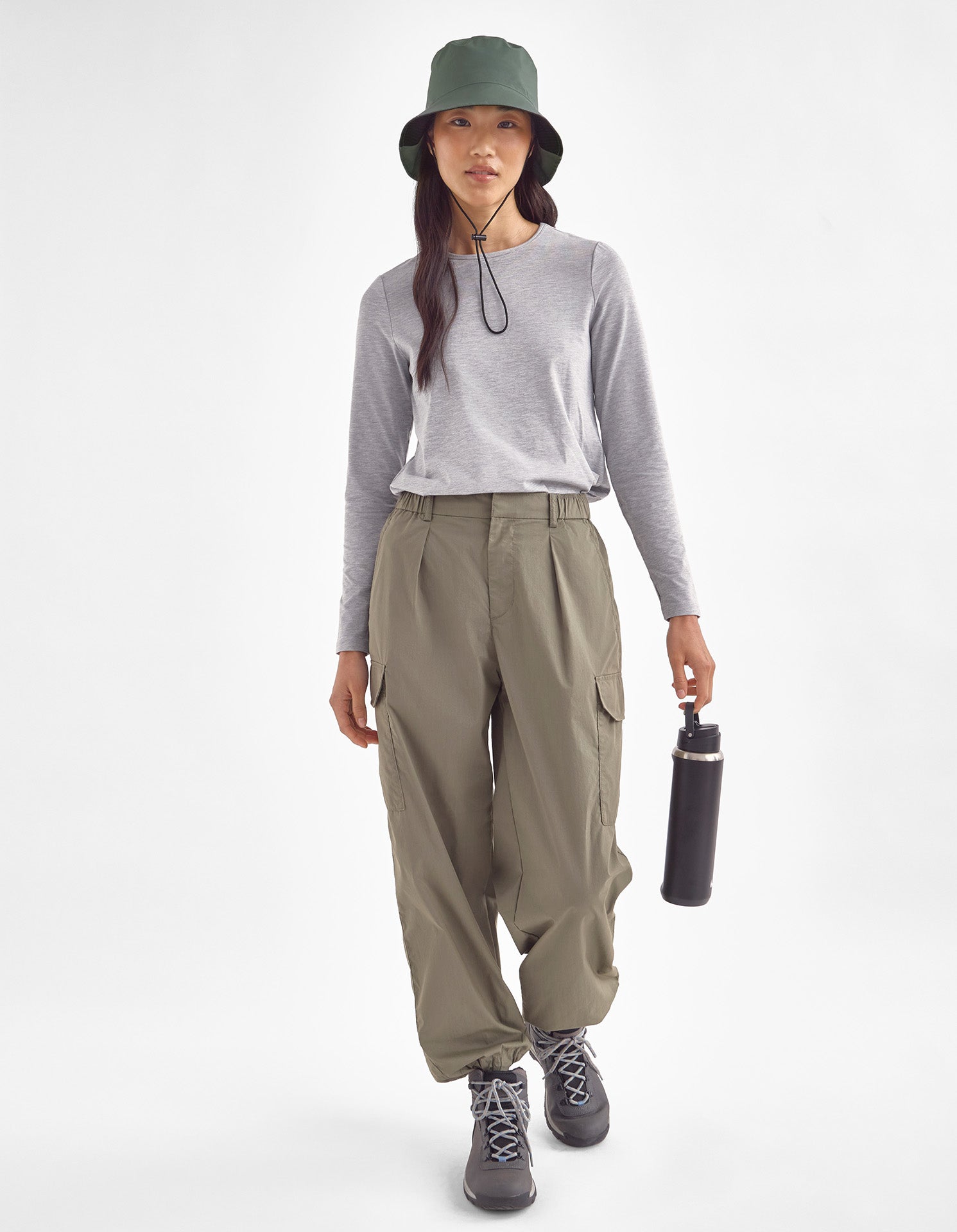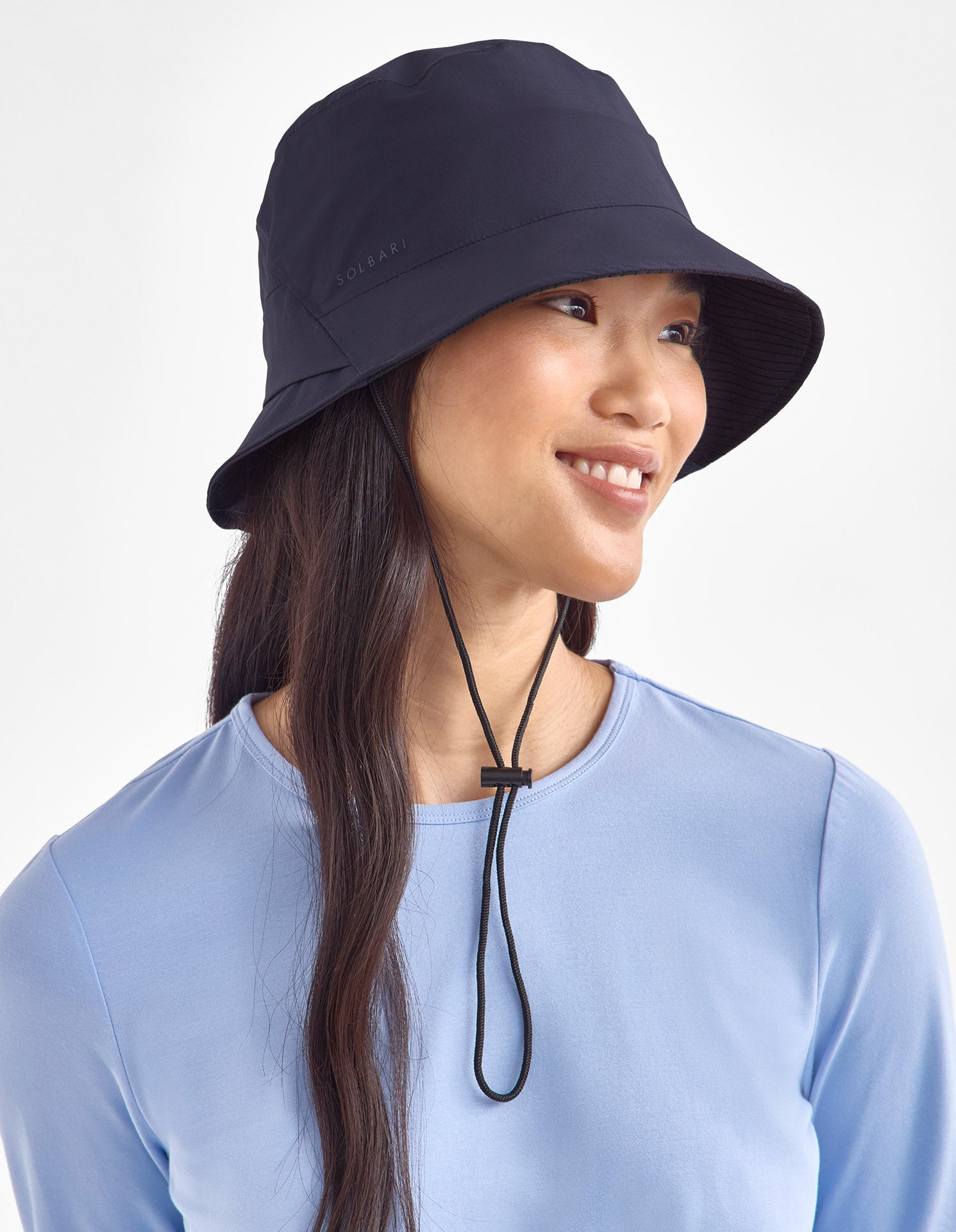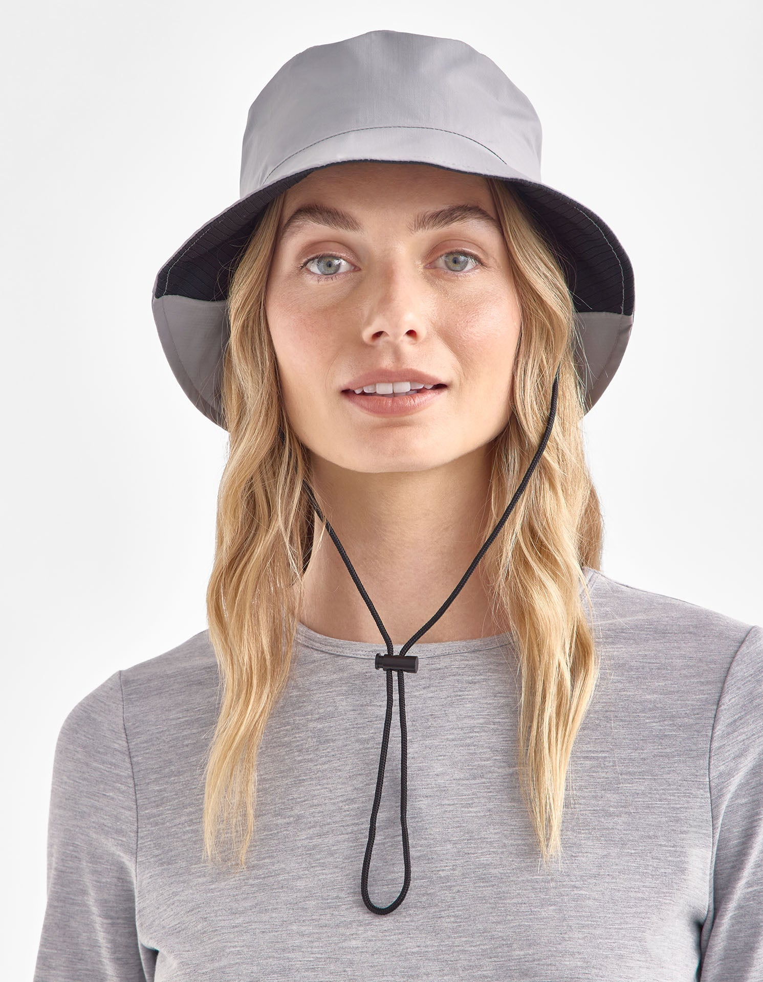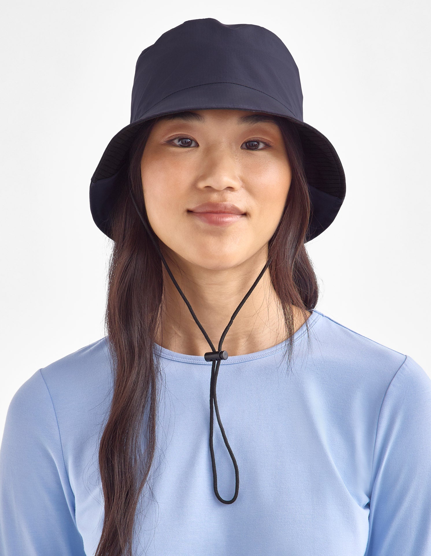 Our Technical Bucket Hat is shaped for comfort, panelled for a secure fit, and crafted from lightweight UPF 50+ fabric for reliable sun protection. It features a fixed chin strap, a concealed toggle for size adjustment, and folds easily for effortless travel.