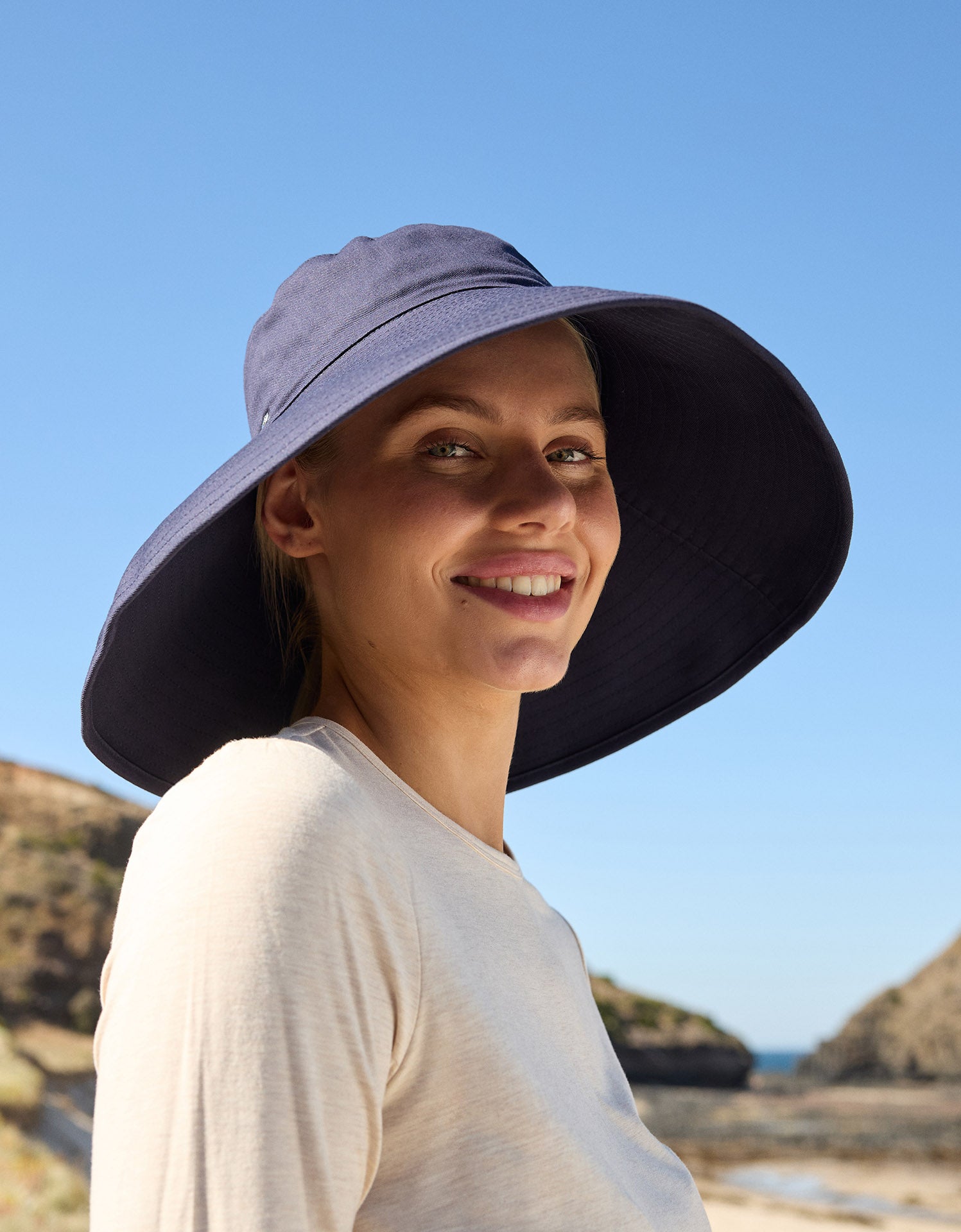 Designed for all-day comfort and dependable sun protection, the Navy Ultimate Wide Brim Sun Hat features a generous 6" (15 cm) brim to shield your face, neck, and ears from harmful UV rays. Made from durable cotton, it offers an adjustable fit, a secure detachable chin strap, and a timeless design that works for both city and outdoor adventures.