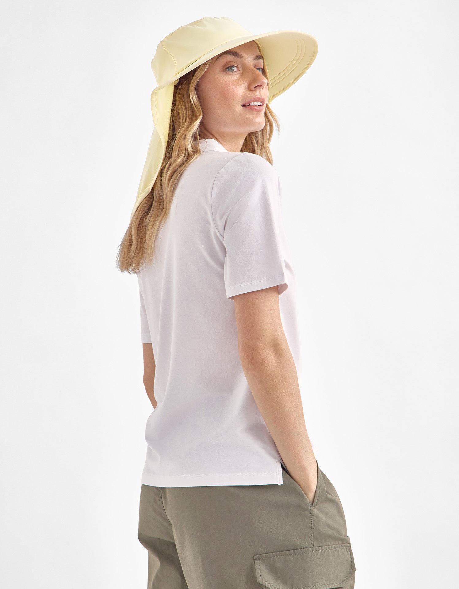 Lady wearing Solbari hat and rash top