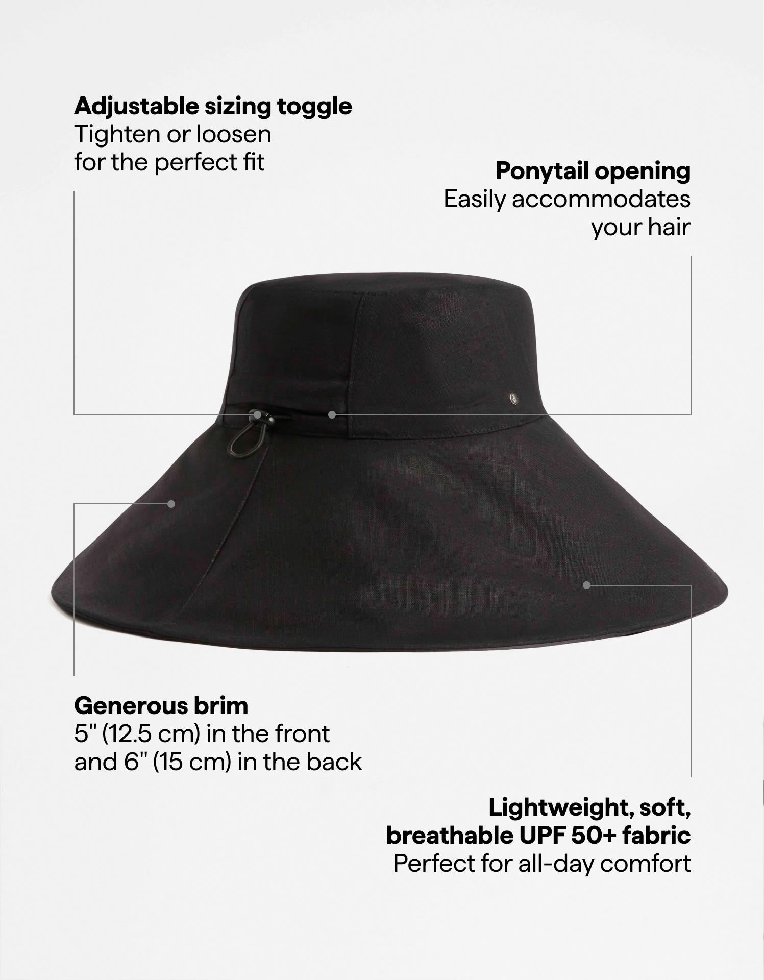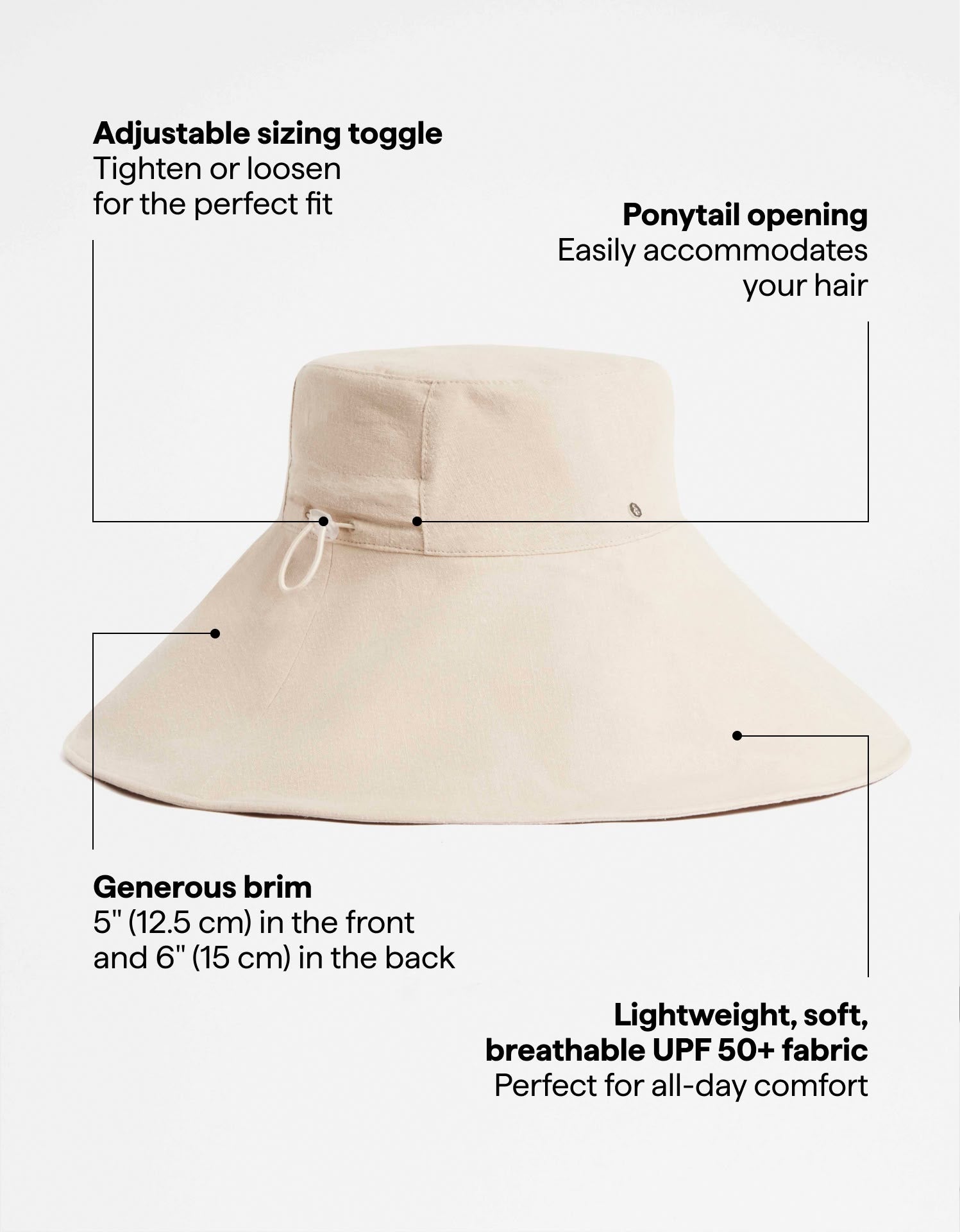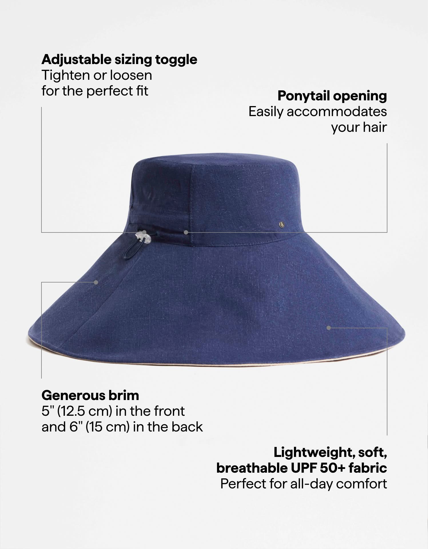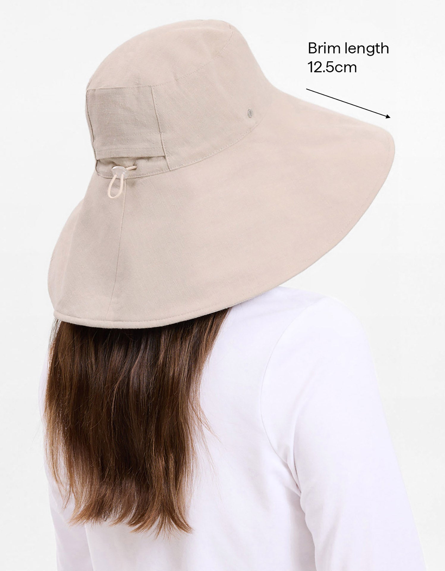Meet our Ultra Wide Cotton Linen Hat, a best-selling style crafted from soft, breathable cotton linen. With a 5" (12.5 cm) front brim and 6" (15 cm) back brim, it offers broad coverage and certified sun protection.