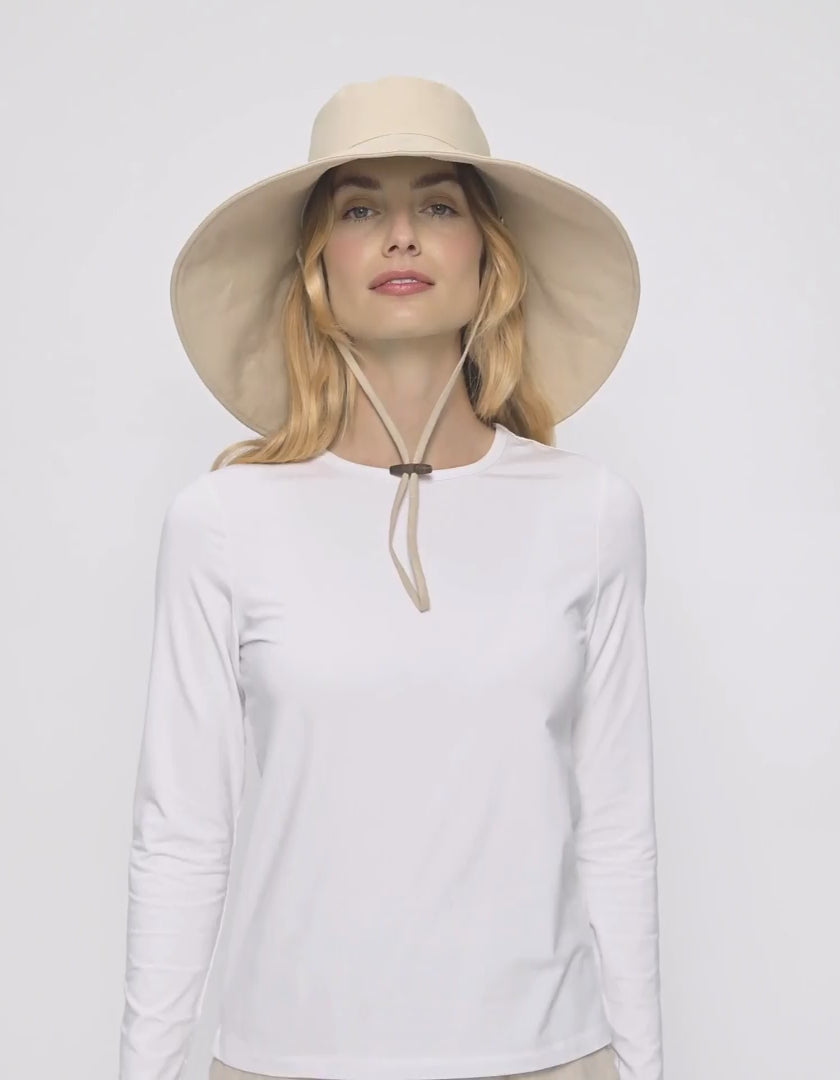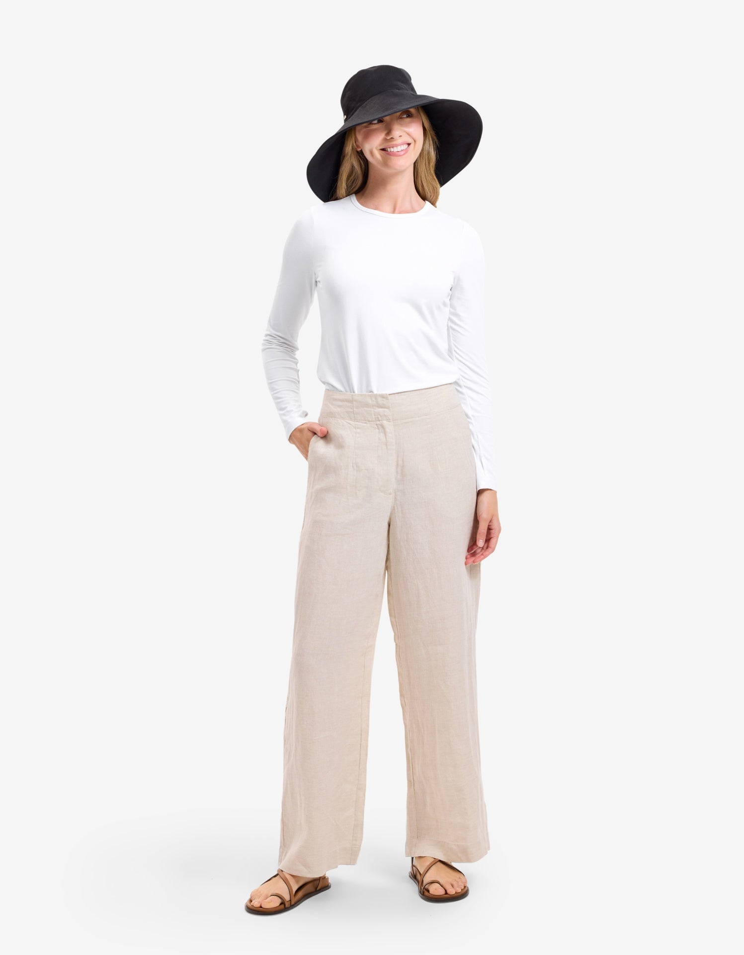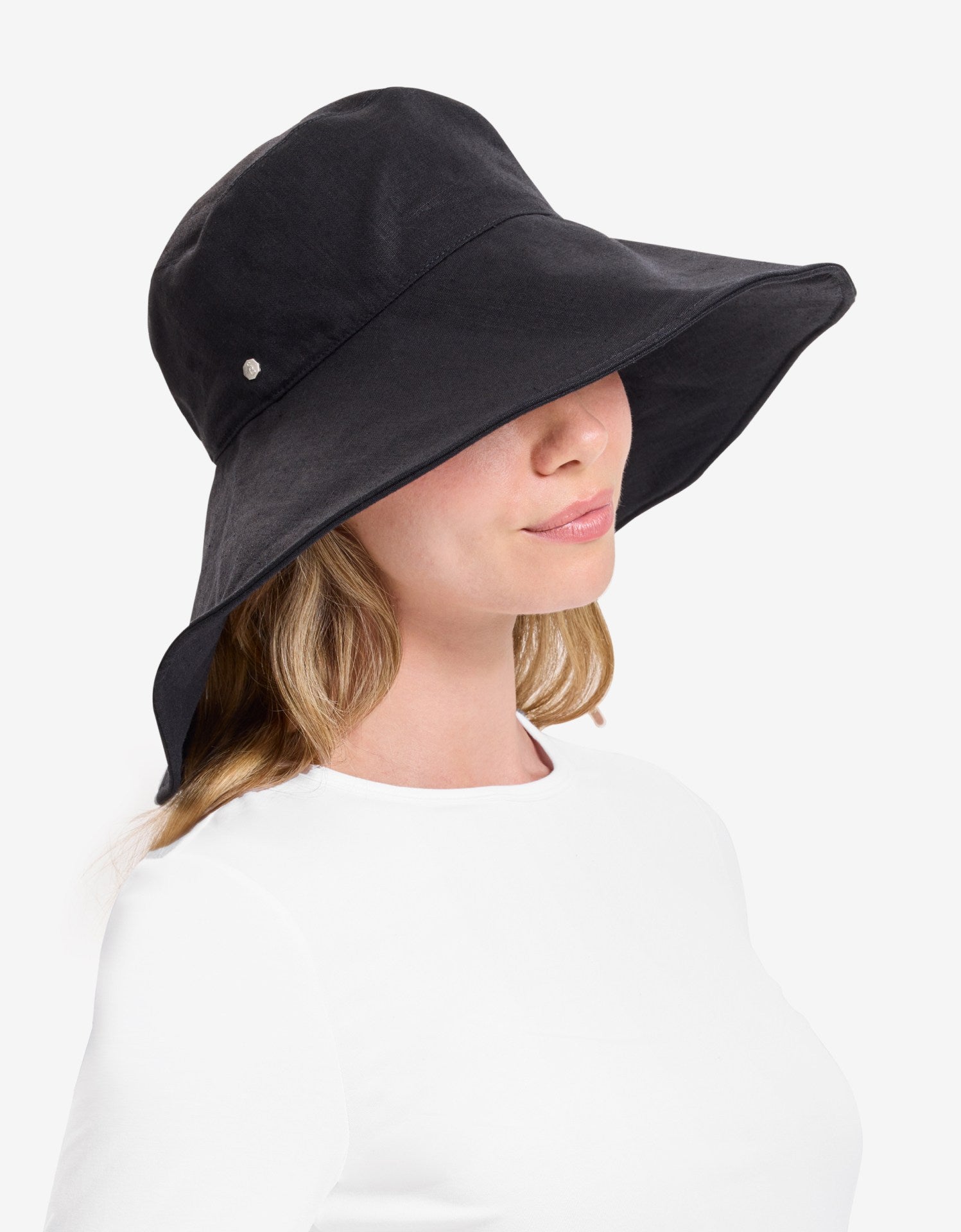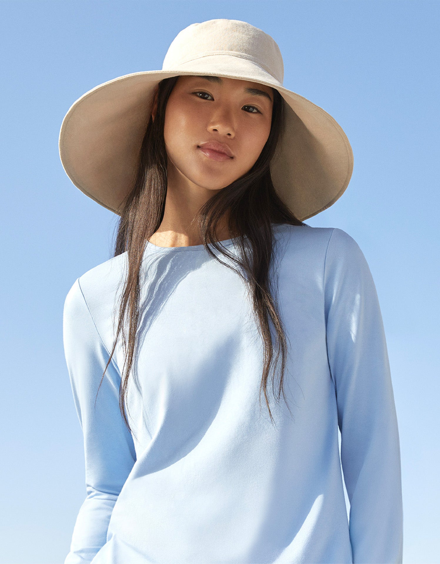 Meet our Ultra Wide Cotton Linen Hat, a best-selling style crafted from soft, breathable cotton linen. With a 5" (12.5 cm) front brim and 6" (15 cm) back brim, it offers broad coverage and certified sun protection.