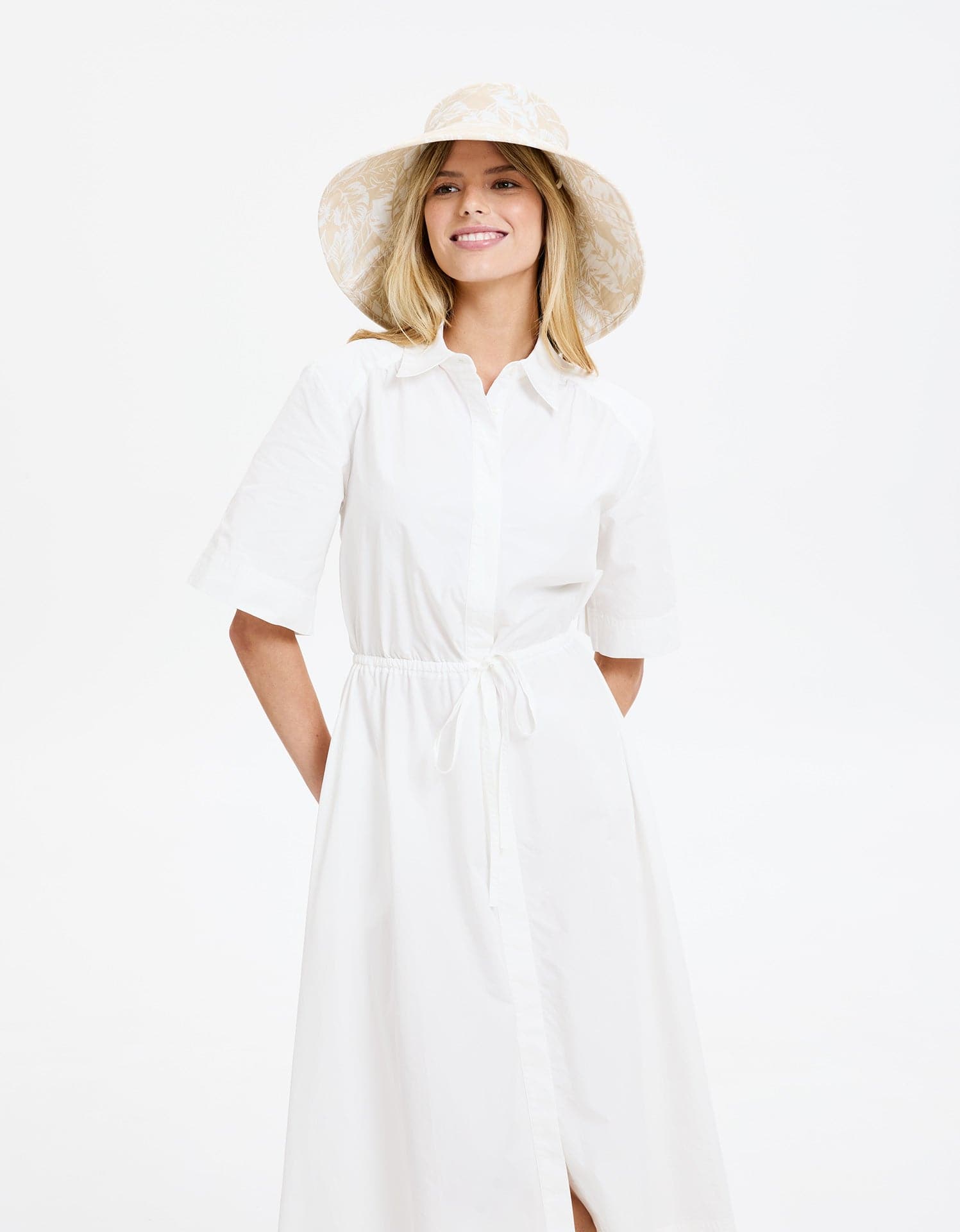 Our Ultra-Wide Tropical Sun Hat is made from 100% cotton canvas and features a tropical print. Designed for durability, this hat features a 5'' (12.5 cm) brim for excellent sun protection. It also includes a detachable chin strap and an internal drawstring for a customisable fit.