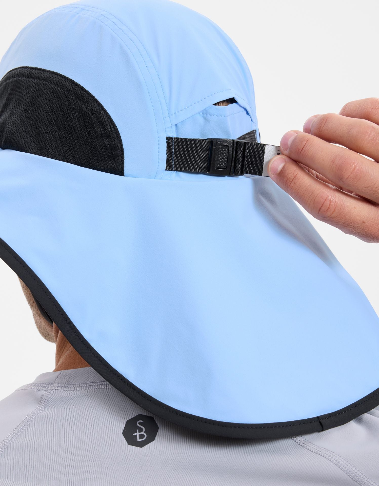 The Water Sports UPF 50+ Hat provides superior sun protection with a 3" (8 cm) front brim and a 6.75" (17 cm) neck cape. Made from salt and Chlorine-resistant fabric, it’s durable, comfortable, and secure with an adjustable chin strap for water sports and activities.