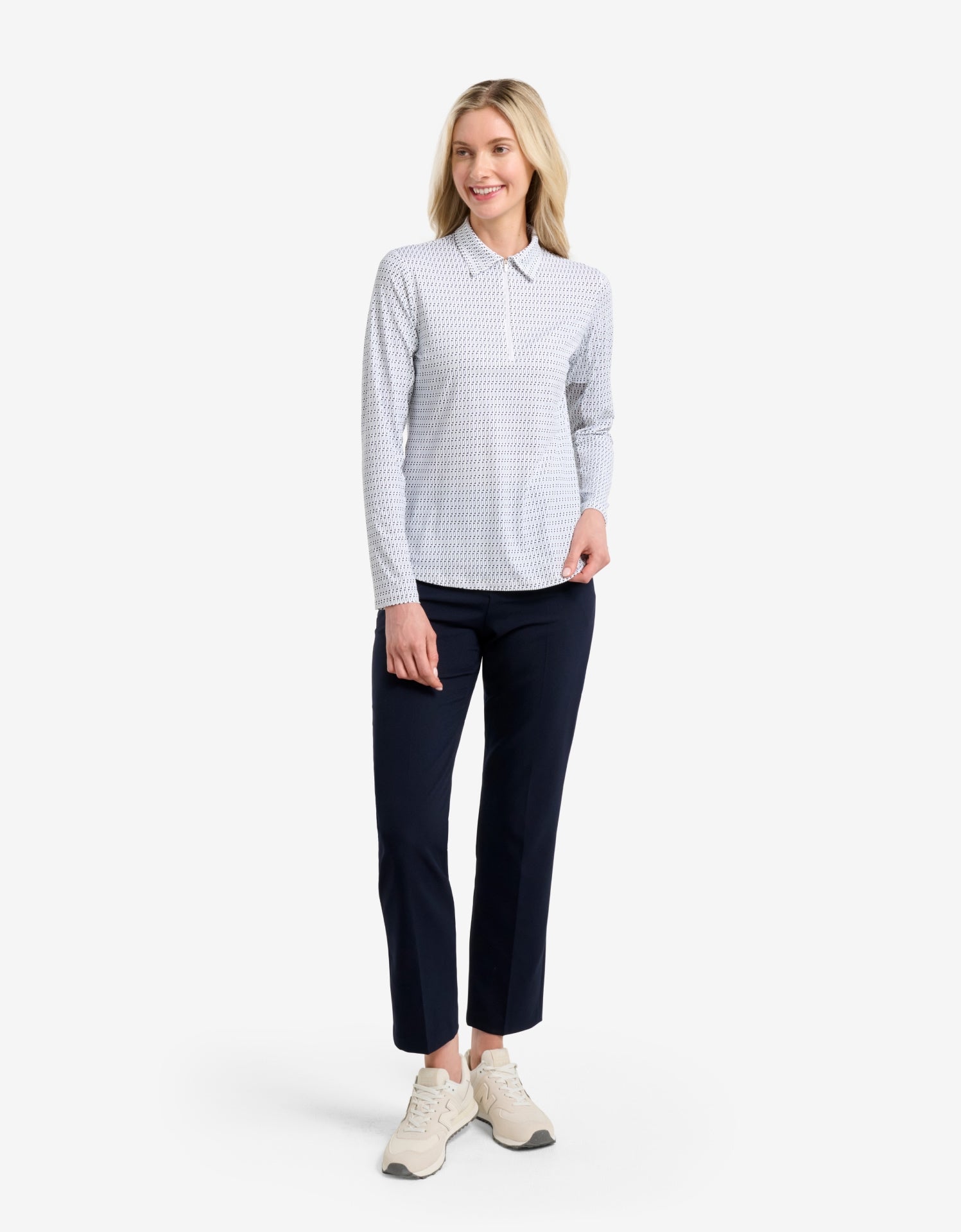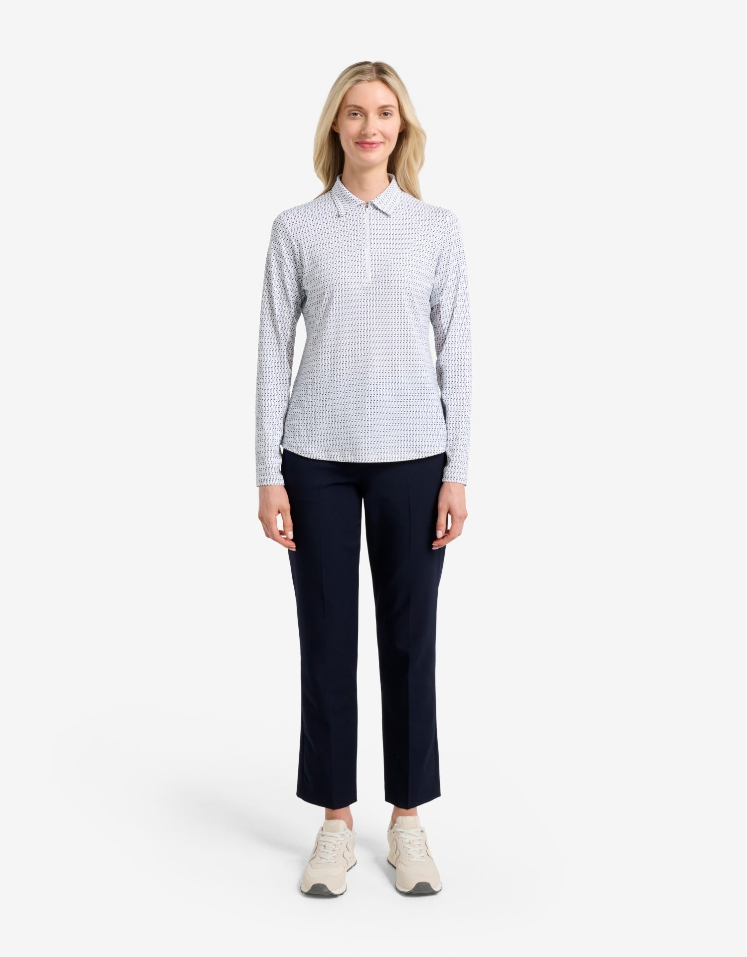 Long Sleeve Printed Zip Polo Shirt UPF 50+